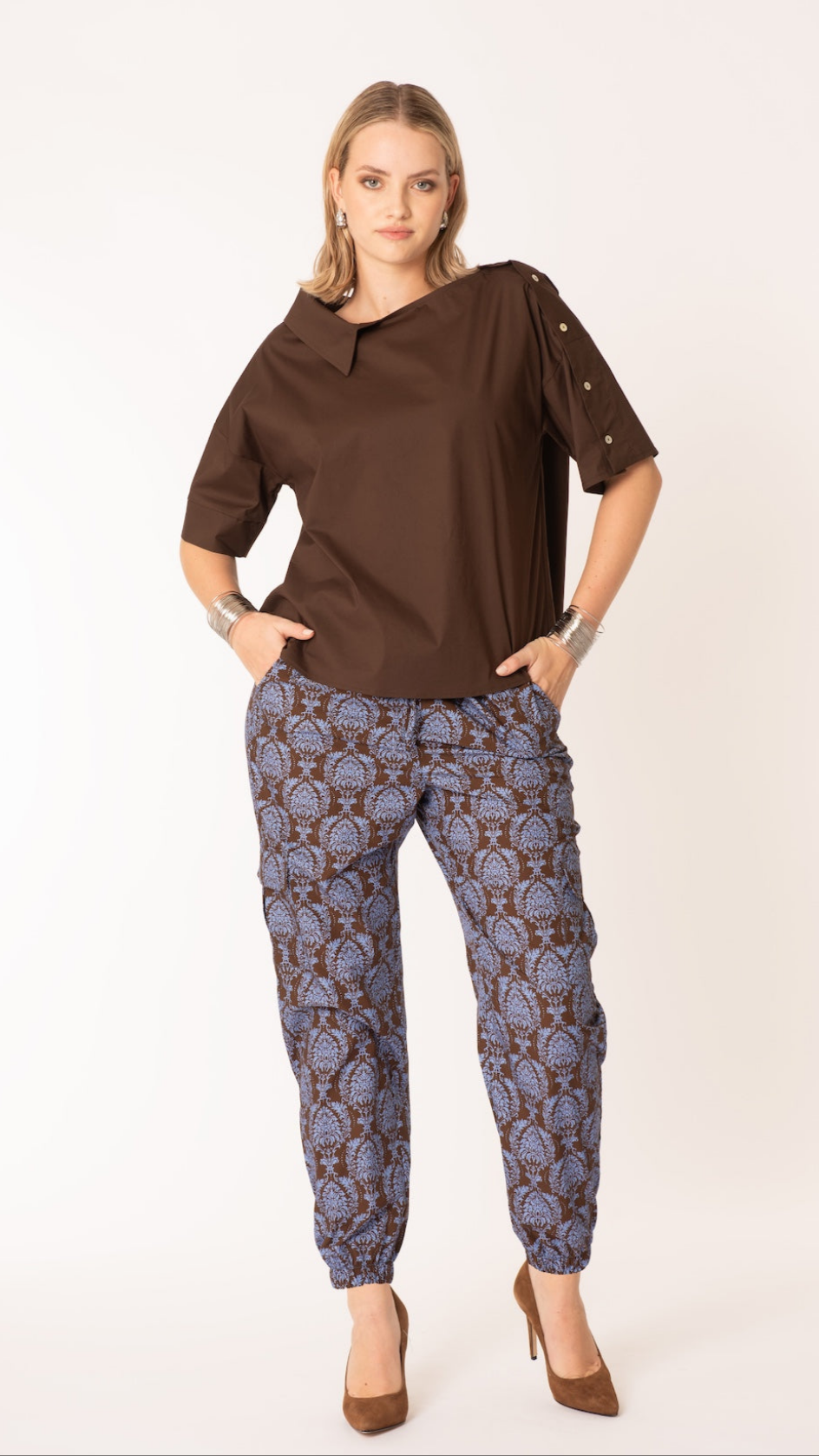 Blusa con bottoni elegante per taglie curvy, realizzata in un sofisticato motivo rigato. Il design accuratamente studiato valorizza la silhouette con una vestibilità ottimale e dettagli raffinati. I bottoni decorativi aggiungono un elemento di stile distintivo, mentre il taglio contemporaneo garantisce comfort e versatilità per occasioni sia formali che casual.