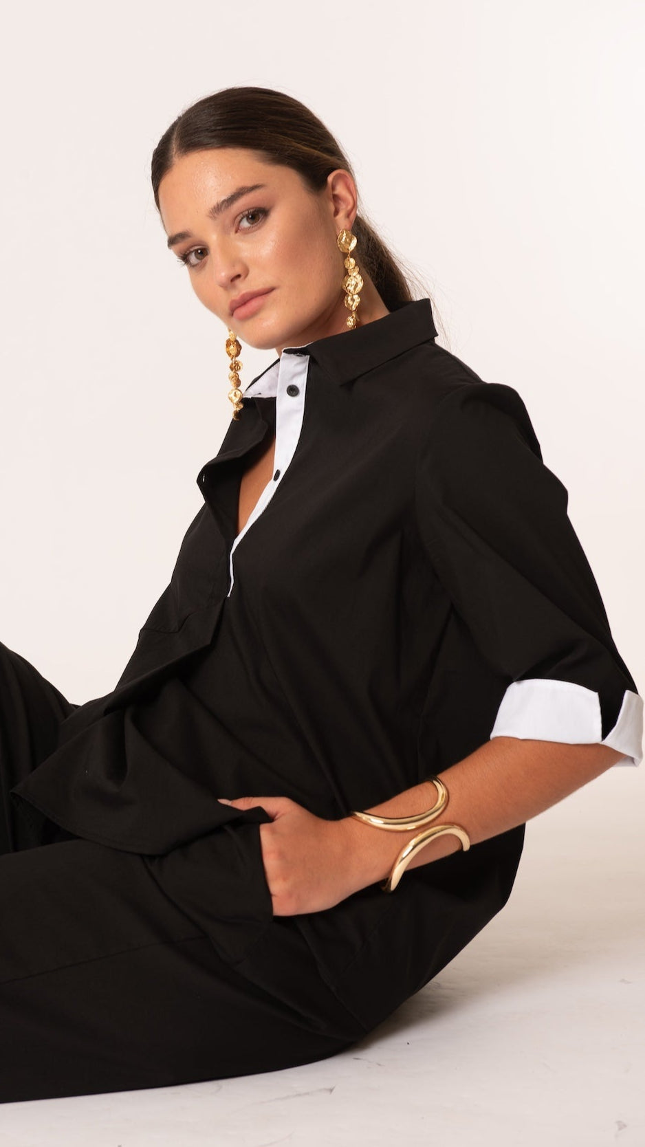 Camicia bicolore in cotone, perfetta per un look elegante e casual. Realizzata in tessuto di alta qualità, offre un comfort e una traspirabilità eccezionali. Il design unico a due colori ti permette di esprimere il tuo stile personale con un tocco di sobrietà.