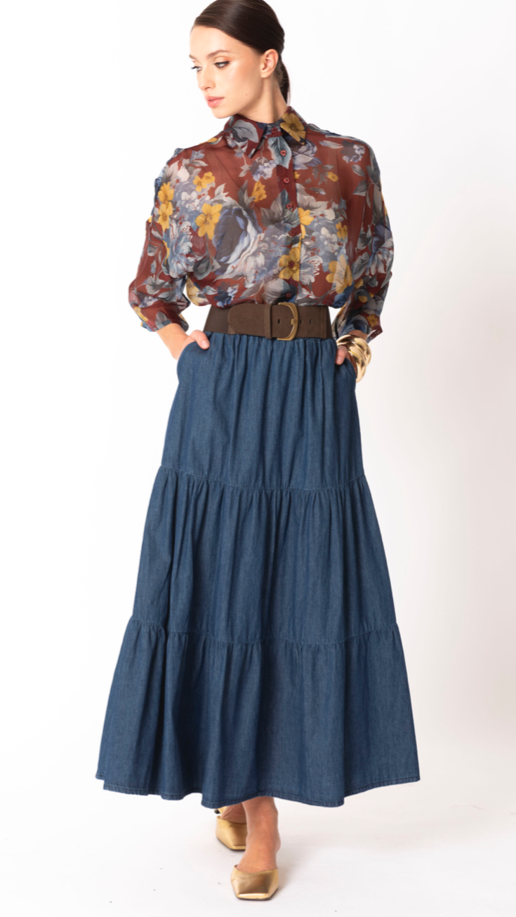 Camicia fantasia fiori viscosa e seta