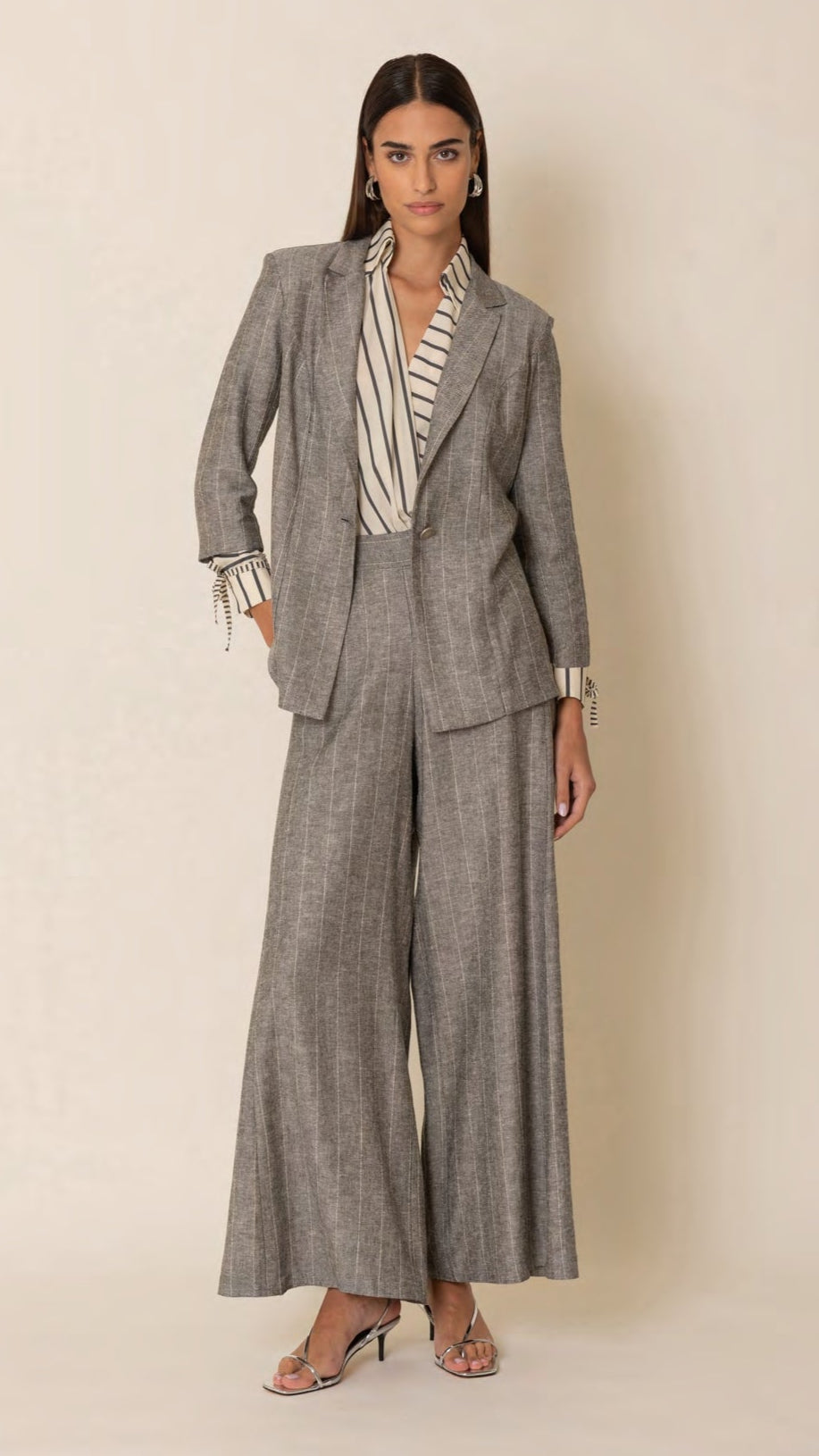 Giacca gessata è realizzata in una combinazione di viscosa e lino, materiali di alta qualità che garantiscono una vestibilità comoda e traspirante. Con il suo design gessato, questa giacca aggiungerà un tocco di eleganza al tuo look senza compromettere la comodità. Perfetta per ogni occasione.