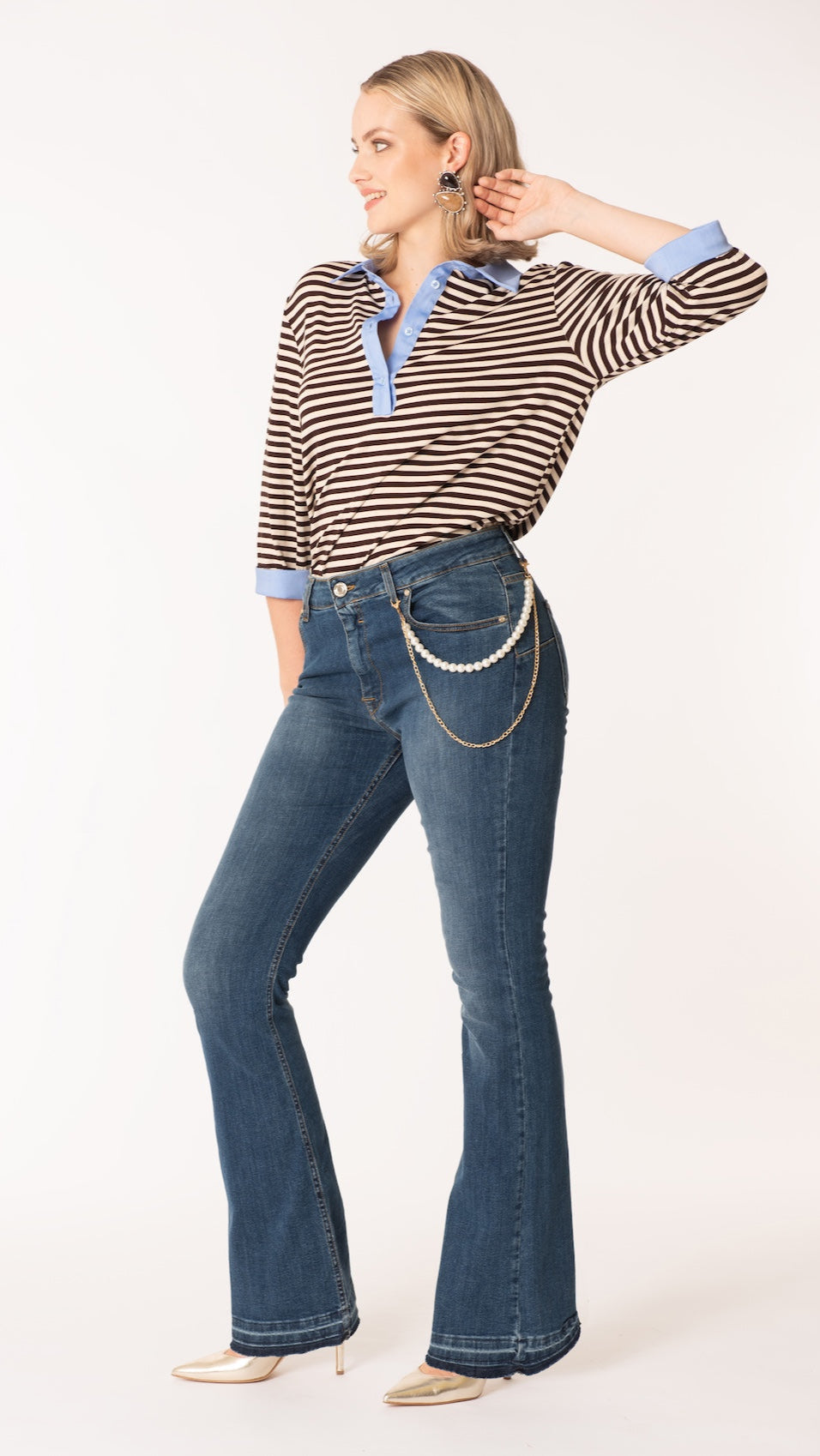 Jeans curvy, il perfetto mix di stile e comfort. La loro zampa ampia dona un look vintage, mentre la catena aggiunge un tocco casual e originale. Realizzati con materiali di alta qualità, questi jeans sono la scelta ideale per un outfit unico e alla moda.
