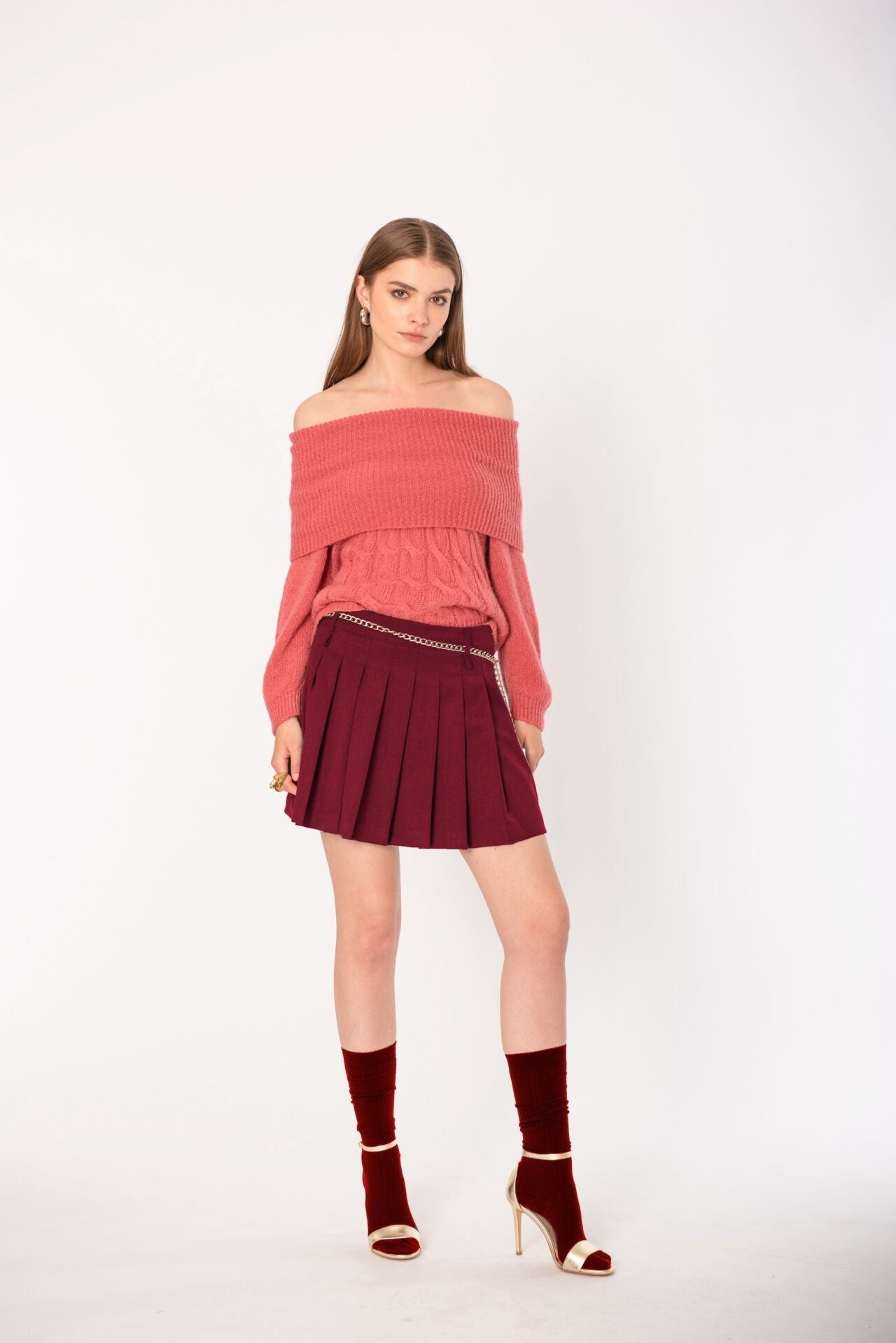 Gonna mini in viscosa con pieghe offre un look elegante e femminile. Adatta per qualsiasi occasione, dal lavoro al tempo libero, questa gonna è un'aggiunta versatile e alla moda a ogni guardaroba.